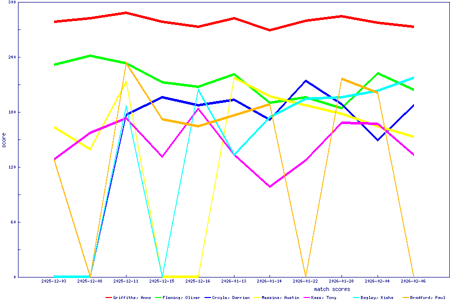 1Griffiths, Anna 96-2 87-0 95-3 278-5 1126-44 281.50